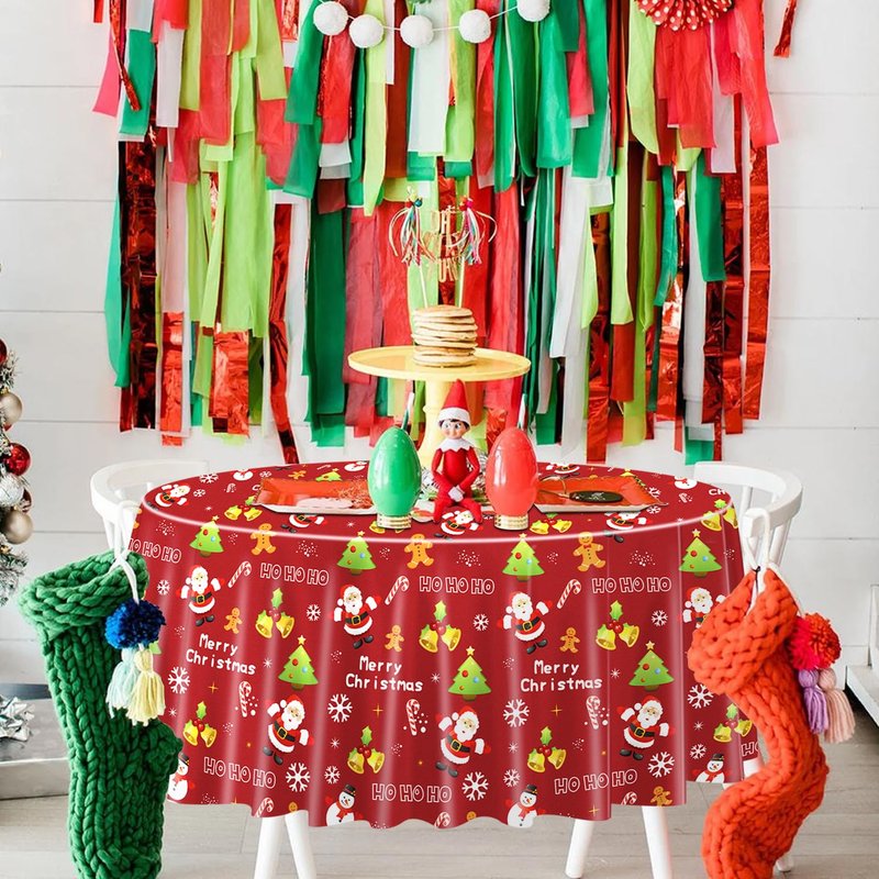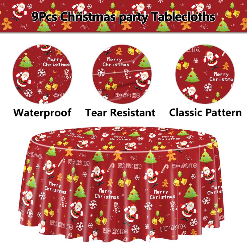 - Classic Christmas Decorations: Our Christmas party tablecloths contain Santa Claus, Christmas snowmen, Christmas trees, snowflakes and other Christmas elements.red table cloth making your Christmas time more festive and memorable