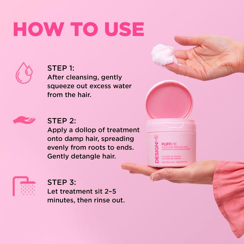 - HAIR VOLUME MASK - The PUFF.ME lightweight treatment by DESIGNME instantly plumps strands to reveal thicker, fuller, and more volumized hair. With a luxurious whip texture, this hair volumizer also strengthens hair, detangles stubborn knots, and leaves hair feeling silky-smooth. The result? Soft, fluffy volume with every use!