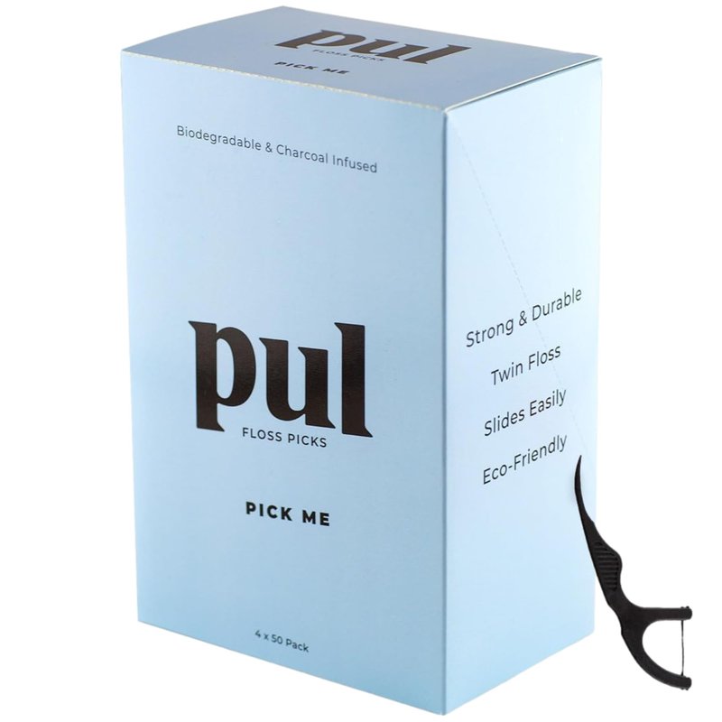PUL Biodegradable Mint Dental Floss Picks Made from Plants - BPA Free Teeth Flossers for Minty Fresh Oral Care - Shred & Fluoride Free Dental Picks - 200 Count
