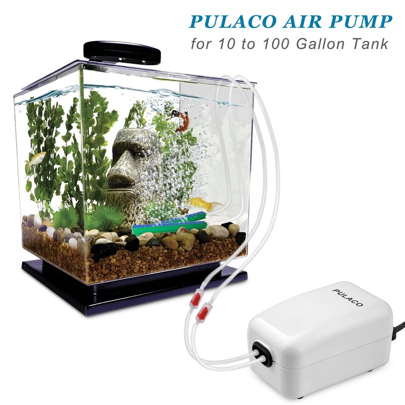 PULACO Dual Outlet Aquarium Air Pump, Quiet Oxygen Pump with Accessories for 10 to 100 Gallon