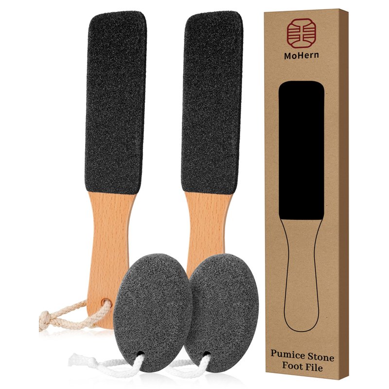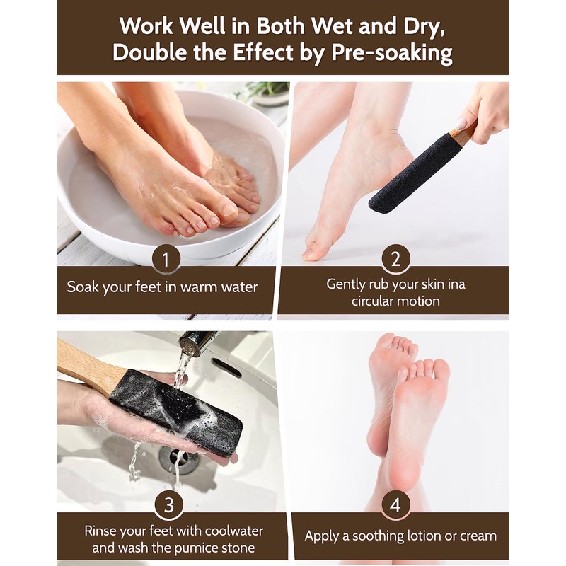 - Say Goodbye to Roughness: Are you tired of stepping on dry, cracked feet? Still worried about leaking rough heels in your sandals? Exfoliate dead skin, calluses and corns, and use your pumice stone and wooden foot file to reveal smooth, soft skin.