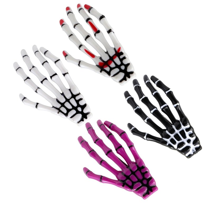 - 1.What you receive--4 pieces skeleton hands bone hair clips in total,4 styles for your choose, which is enough to match your various hairstyles. creative skeleton hand bone claw design with chic pattern, not only embellishes your hair, but also are great for Halloween party decoration, help you to become the focus of the crowd.
