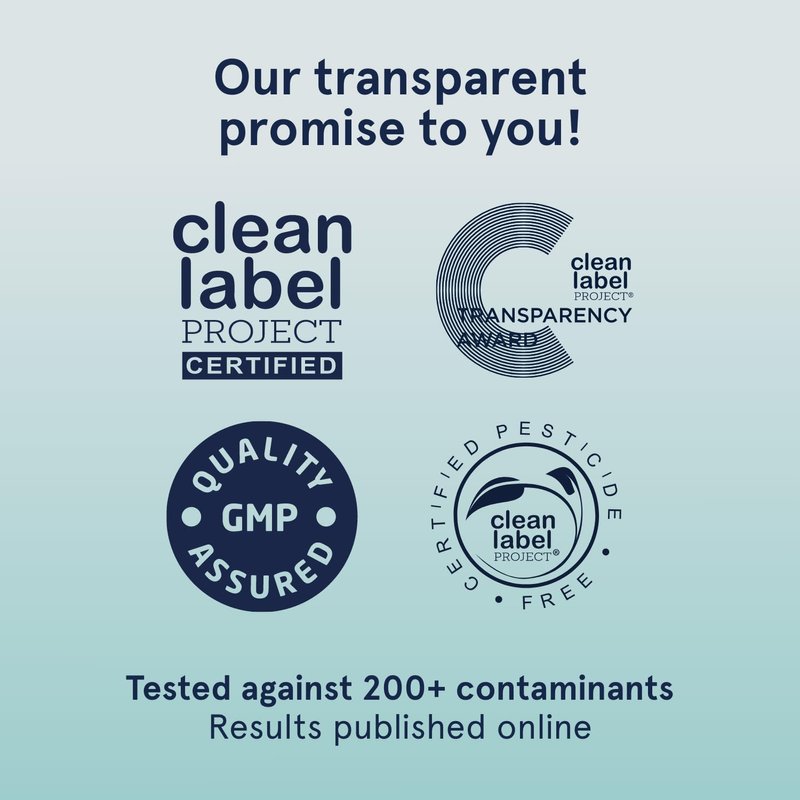 - FULL TRANSPARENCY: Every batch of every product tested for purity and potency by Clean Label Project. They use independent laboratories and publish the test results for everyone to see.
