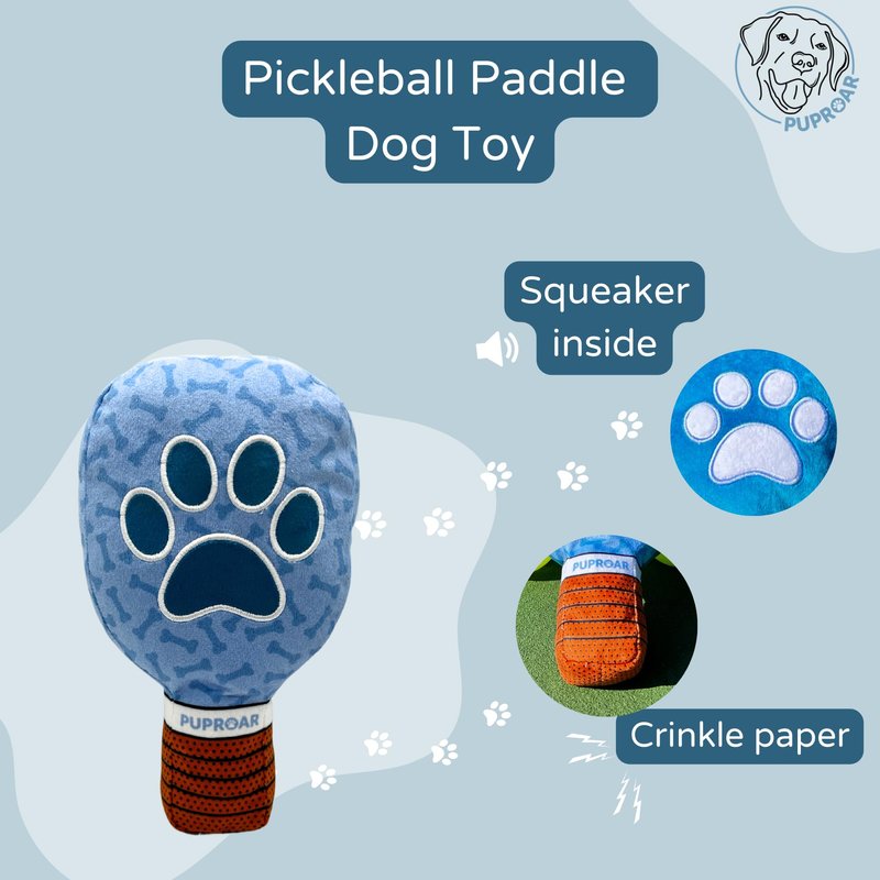 Get your dog ready to "play the game" with the PUPROAR Pickleball Paddle Dog Toy! This plush, sports-inspired dog toy is perfect for dogs and pickleball-loving pet owners alike. Designed to resemble a real pickleball paddle, this funny, plush dog toy offers a unique combination of engaging features, including crinkle paper for added excitement, a squeaker for satisfying playtime, and durable stitching to keep it ready for any tug or fetch session. Ideal as a fall dog toy, Christmas gift, or holiday stocking stuffer, this toy is a cute and clever way to add a touch of humor and joy to your pup's playtime. The PUPROAR Pickleball Paddle Dog Toy is more than just a squeaky dog toy—it's crafted to give your pup an immersive play experience, with every chew rewarded by its built-in squeaker and crinkle paper, which mimic the sounds of real sports gear. Made with durable and pet-safe materials, this plush toy is gentle on your dog’s mouth but tough enough for long-lasting fun. Whether your dog loves to chew, fetch, or tug, this pickleball paddle is a hit for active and playful pups alike, keeping them engaged and satisfied. Perfect as a Christmas dog toy or a thoughtful holiday gift for dogs, this plush sports dog toy makes a great stocking stuffer or everyday surprise for any pet parent who loves pickleball. Safe, durable, and easy to clean, the PUPROAR Pickleball Paddle Dog Toy is designed with quality and creativity in mind by pet enthusiasts at PUPROAR. Let your dog join in on the pickleball fun this holiday season—no court required!