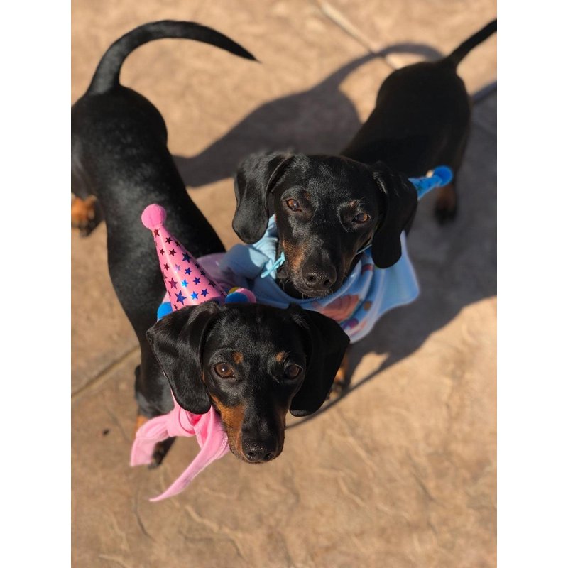 Light up your dog birthday party with our awesome dog birthday bandana and hat set.