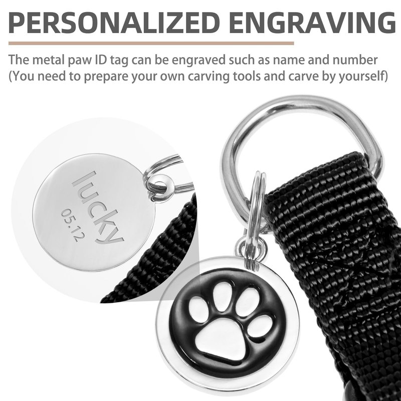 - [Cute ID Tag for DIY] - Each harness is equipped with a metal ID tag, and the front is a cute paw pattern, while on the back, you can engrave whatever you want, such as the dog's name and so on. It does not corrode as easily as wooden labels and is durable. You can also remove it when washing the harness.