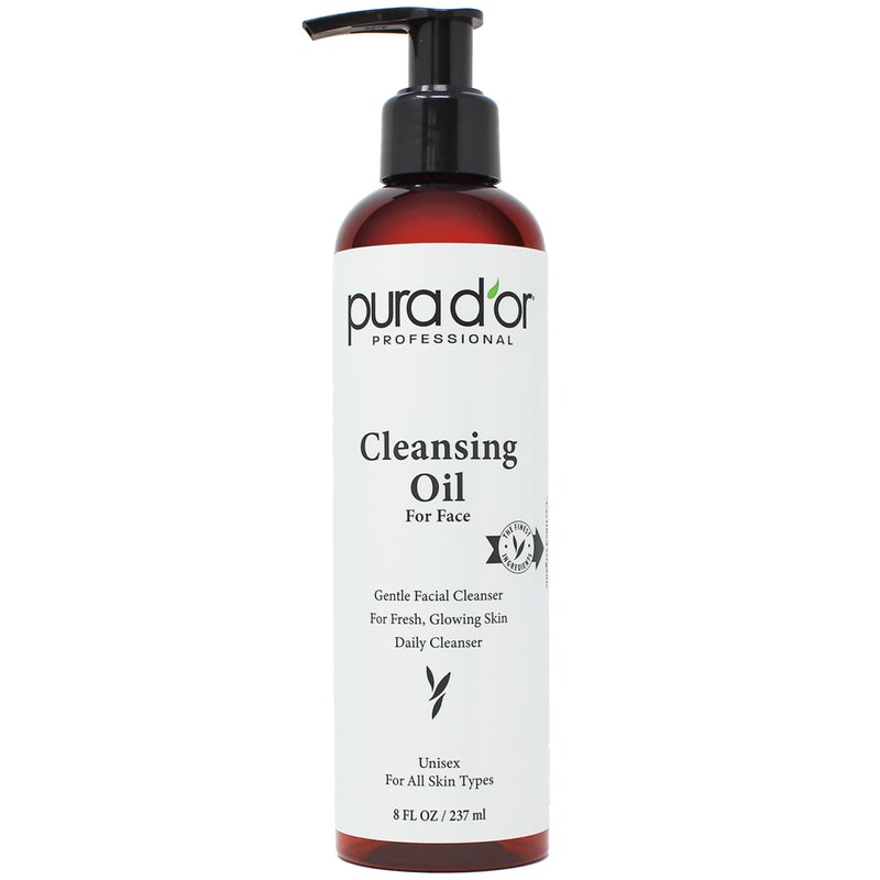 PURA D'OR 8 Oz Facial Cleansing Oil - Nourishing Botanical Blend with & Vitamin, Jojoba and Sunflower Oil - Gentle Makeup Remover & Deep Cleanser For Healthy, Glowing Skin - Paraben-Free Beauty