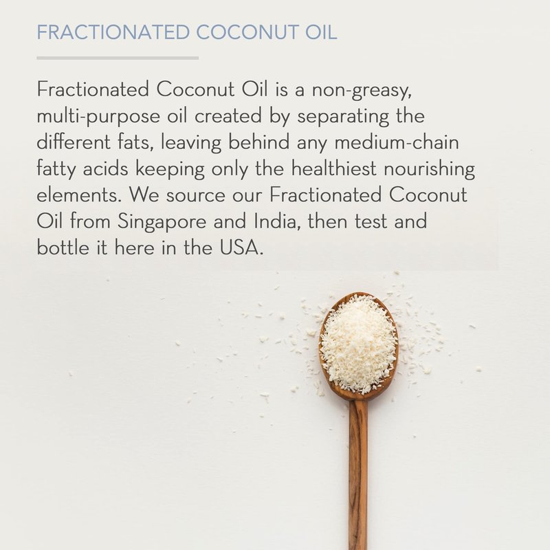 Fractionated Coconut Oil is a non-greasy, multi-purpose solution for hair, face, body and nails. It's also perfect for diluting essential oils. Fractionated Coconut Oil is made by separating the different types of fats in coconut oil, leaving behind the medium-chain fatty acids (Medium Chain Triglycerides or MCTs), providing the most health benefits.