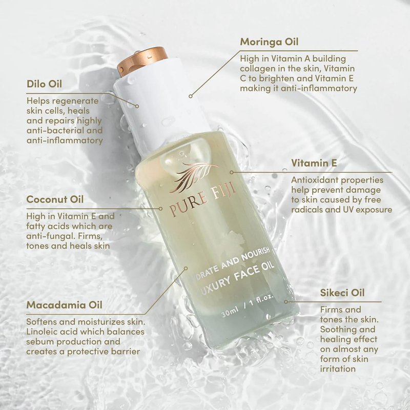 PURE FIJI Hydrate & Nourish Luxury Face Oil Face Moisturizer for Women, Skin Brightening Serum - Anti Aging, Reduce Wrinkles & Dark Spots, Coconut Oil For Face Organic, 1 Fl.Oz