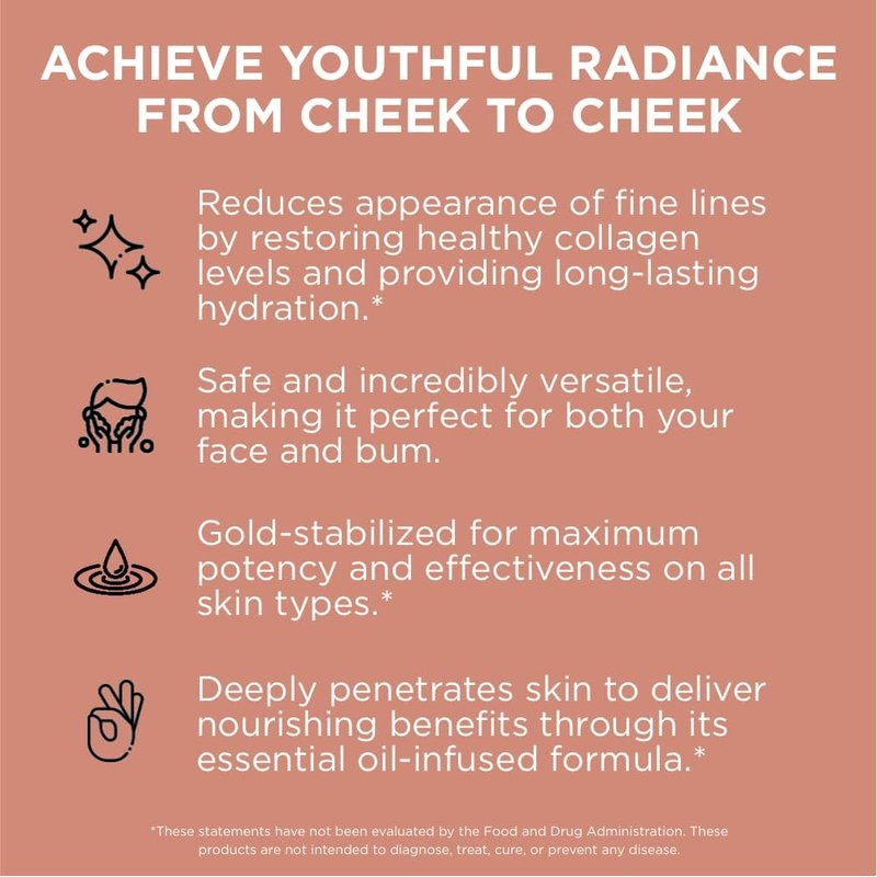 Discover the power of Pure for Men's gold-stabilized Vitamin C serum. This innovative serum is formulated to potentially reduce the appearance of fine lines by helping restoring healthy collagen levels and providing long-lasting hydration to your skin post-cleanse. Infused with essential oils, ascorbic acid, Vitamin C, and gold peptides, this serum allows for deep skin penetration. Experience the transformative effects of this unique serum and unlock your skin's potential. Safe to use on your face and your bum.