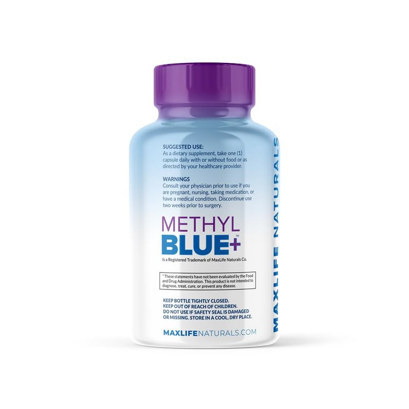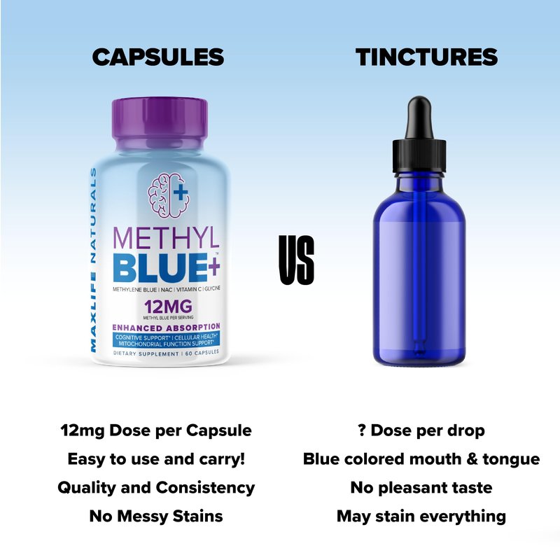 Pure Methylene Blue Capsules Pharmaceutical Grade 12mg - 60 Capsules, High-Purity Antioxidant Ultimate Methylene Blue Supplement Capsules with Vitamin C Ester, & NAC Glycine for Mental Clarity