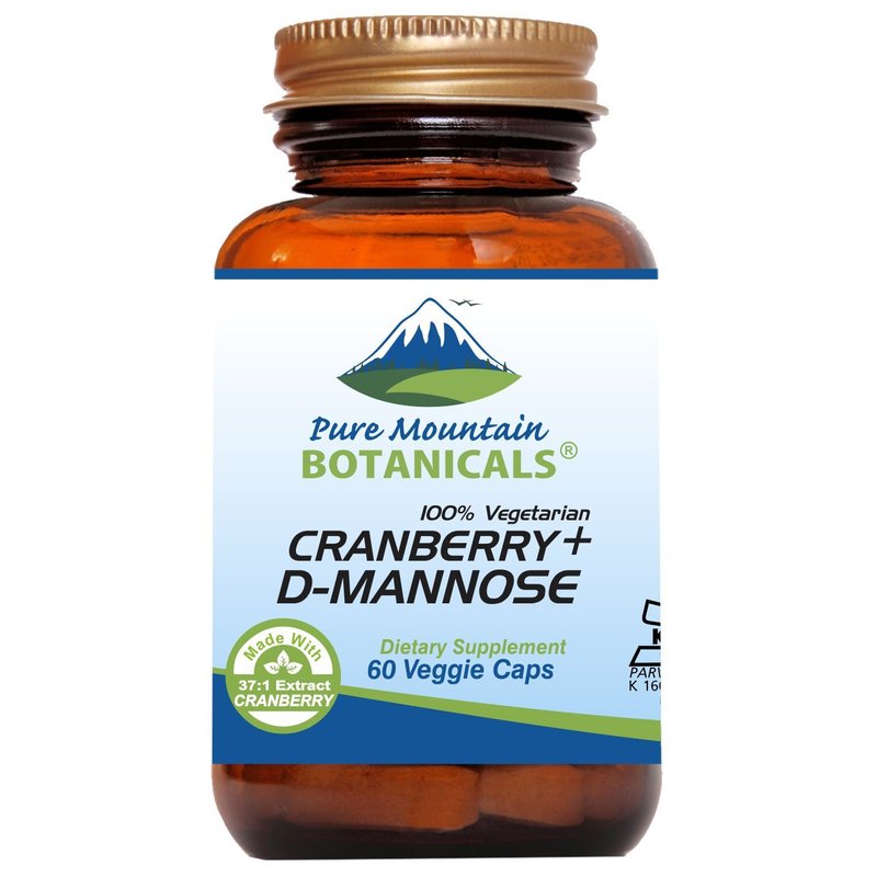 Pure Mountain Botanicals Cranberry D Mannose Capsules - 60 Kosher Vegan Caps - 1000mg D Mannose with Cranberry Concentrate Plus Vitamin C