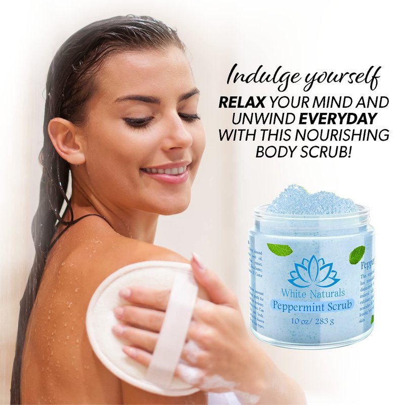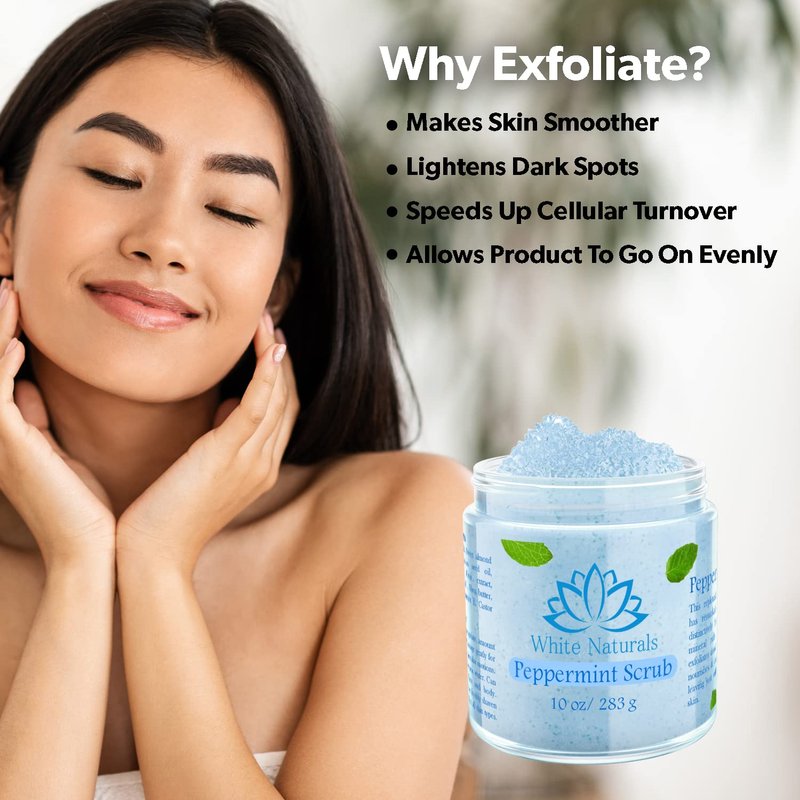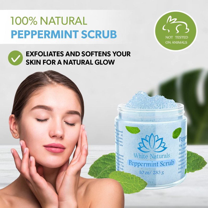 - EASY TO USE: The White Naturals Peppermint skin scrub can be used on all skin types. Apply a small amount of our natural scrub to any skin area and massage it gently into the skin using circular motions. Don’t forget to rinse thoroughly and apply your favorite face cream to lock in the moisture.