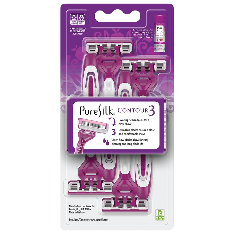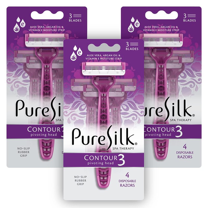 Pure Silk Contour 3 Premium Disposable Razor Value Pack Bundle (3 Packs/12 Total Razors)