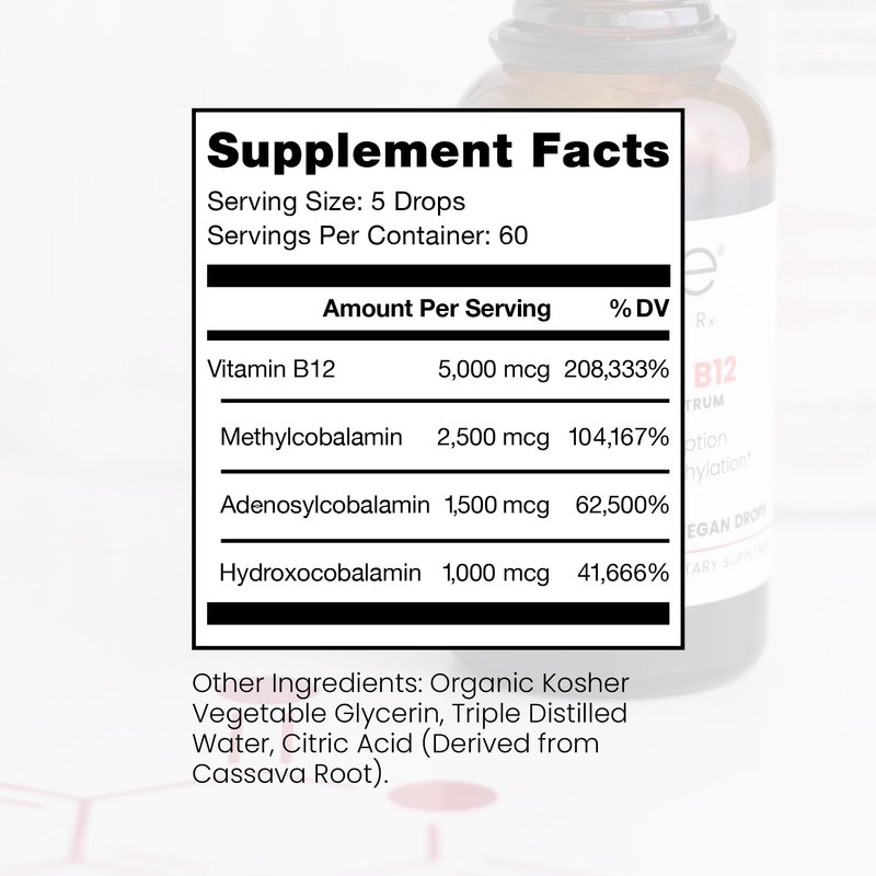 Meet Pure Thera's BioActive's Full Spectrum Methylcobalamin B12, the ultimate three-in-one liquid B12 Methylcobalamin. This isn't your run-of-the-mill B-12 vitamin complex, our advanced and unique liquid vit B12 supplies you with the maximum amount of absorption possible so that you can truly reap all the healthy benefits. Our liquid vitamin B 12 drops are super easy to take or administer and have an extremely tolerable taste. At Pure TheraPro Rx, the quality, effectiveness, and safety of our vitamin supplements, including our vegan vitamin B12 supplement are always our top concern. And that's exactly why our B complex liquid does not contain flow agents, fillers, or excipients of any kind. On top of that, our B-12 sublingual 1000 mcg is packaged and formulated in the USA in NSF-certified facilities, third-party tested, and follows strict cGMP guidelines from the FDA. Our sublingual B12 1000 mcg is sure to become your new favorite daily ritual! These non-GMO and unflavored vitamin B 12 supplements were thoughtfully created with your total and complete satisfaction in mind. You never have to worry about ingesting ingredients sourced from China with our B 12 vitamin. We take the potency, authenticity, and quality of our B complex vitamins for women and men, as well as all of our vitamins and supplements, extremely seriously. These vegan vitamins are sure to put a smile on your face and a pep in your step! Experience for yourself what a difference our B12 sublingual 1000 mcg vitamin B complex liquid can make for those seeking health and wellness in their lives! Our vitamin B12 drops vegan B12 liquid is easy to take, virtually tasteless, and gets the job done for your daily dose of wellbeing. Our B12 vitamins liquid is a premium quality solution you and your family can use daily. Our B12 liquid drops are made using only the finest premium quality ingredients available. Get our sublingual B12 vegan drops today!