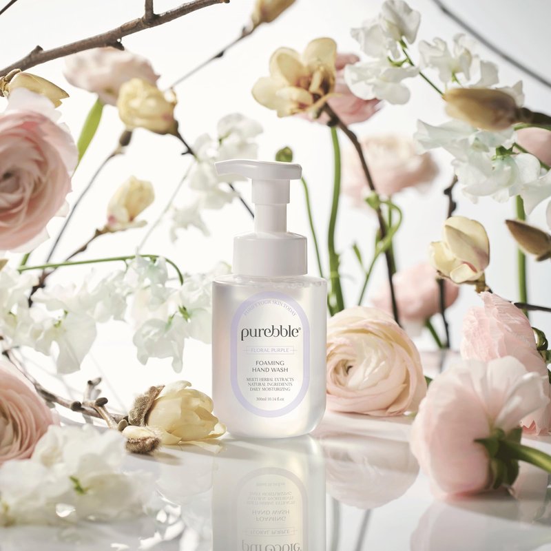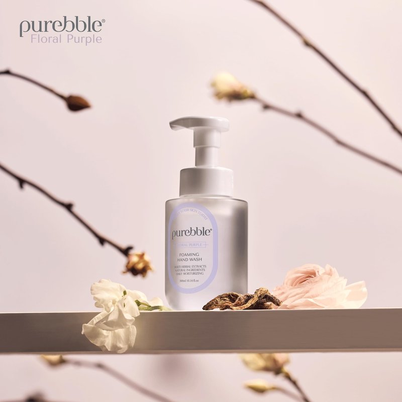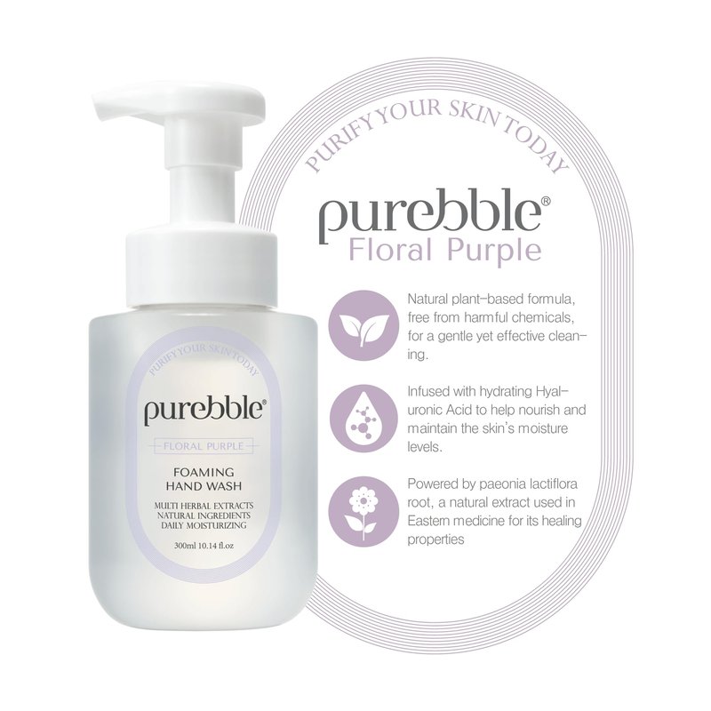 PUREBBLE Floral Purple Foaming Hand Wash with Hyaluronic Acid, Floral Scent, 10.14 fl oz, | Gentle, Hydrating Formula | For Kitchen and Bathroom | Cruelty Free Sulfate Free | 2 Pack