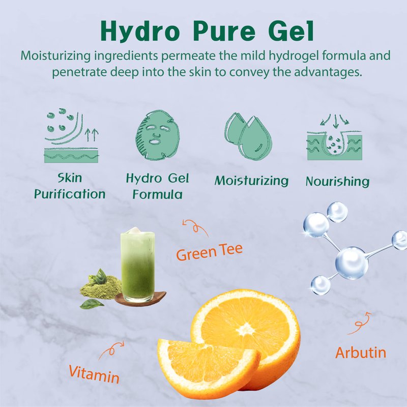 PUREDERM Cell Illuminating Hydro Pure Gel Mask (5 Pack) - Korean Beauty, 100% Hydrogel Sheet Face Mask for Dry Skin with Hyaluronic Acid - Deep Moisture to the Skin, Non-irritating - Natural ingredients with Arbutin and Vitamin E are Sufficiently delivered to the Skin Brighten