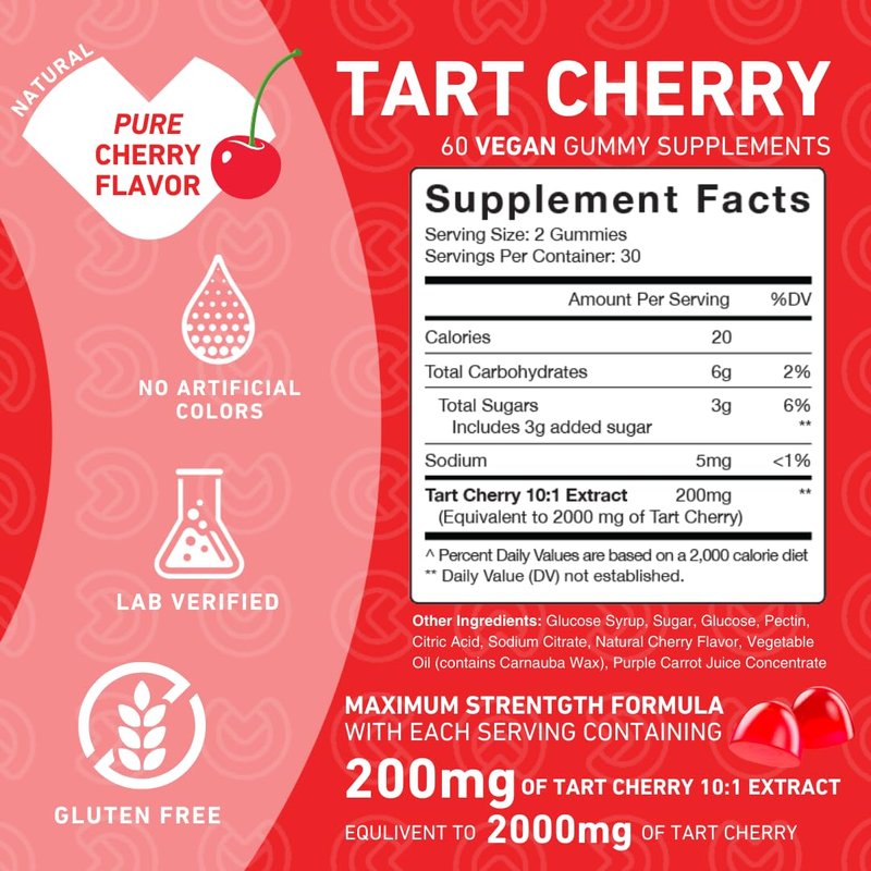 PUREFINITY Tart Cherry Gummies - 60 Gummies (Pack of 2) *These statements have not been evaluated by the Food and Drug Administration. This product is not intended to diagnose, treat, cure, or prevent any disease.