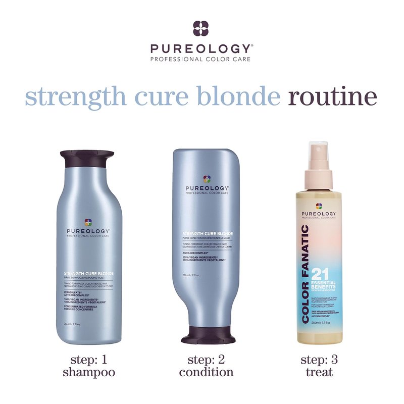 - Trusted by salons and professionals, Pureology's shampoo formulas are sulfate-free, paraben-free, vegan, and safe for color treated hair. Try the Strength Cure Blonde Conditioner for toning benefits