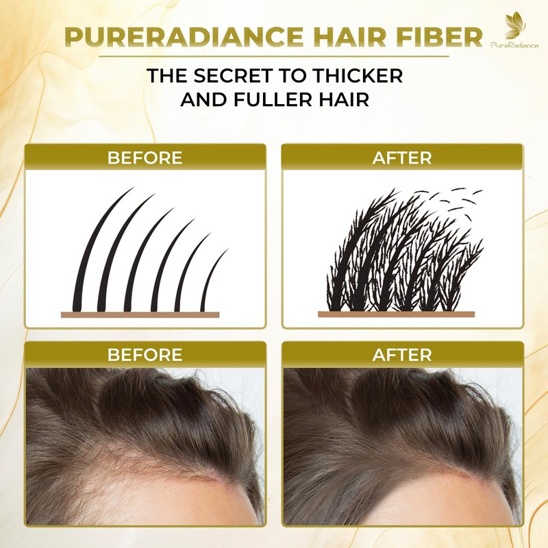 - All-Day excellence: Our long-lasting hair-filling fibers keep your hair looking voluminous and vibrant from morning till night, allowing you to focus on conquering your day without any hair-related interruptions. It's great for anyone who doesn't want to keep putting on hair fiber all day. With PureRadiance, you only need to apply it once.