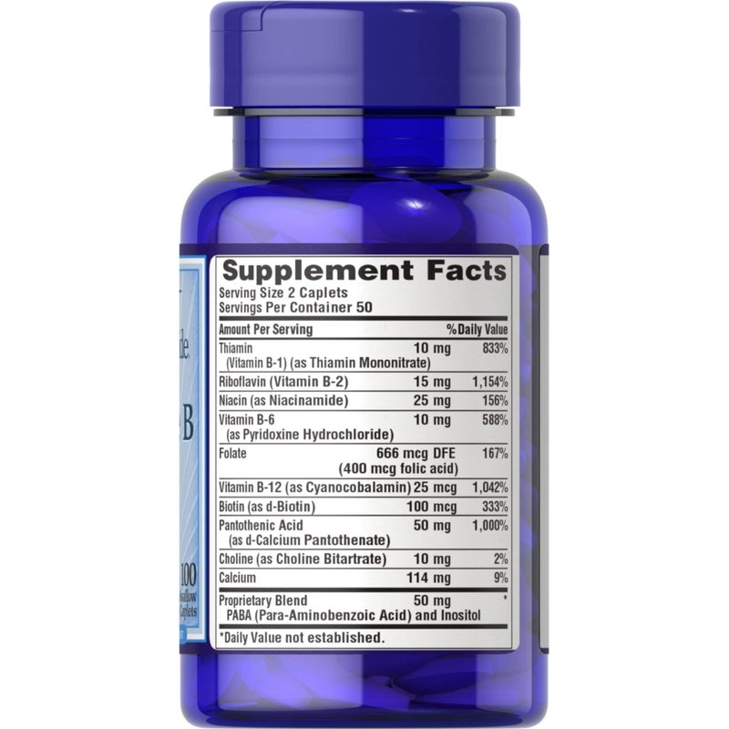 Complete Vitamin B Complex provides seven important B vitamins in just two caplets without sugar, starch, artificial colors or flavors. You get the entire B family in this sodium-free tablet the best B vitamin nutrition you can buy! Directions: For adults, take two (2) caplets one to two times daily, preferably with meals. Other Ingredients: Vegetable Cellulose, Dicalcium Phosphate. Contains <2% of: Natural Palm Leaf Glaze, Silica, Vegetable Magnesium Stearate. WARNING: If you are pregnant, nursing, taking any medications or have any medical condition, consult your doctor before use. Discontinue use and consult your doctor if any adverse reactions occur. Keep out of reach of children. Store at room temperature. Do not use if seal under cap is broken or missing. No Artificial Color or Flavor, No Preservatives, No Sugar, No Starch, No Milk, No Lactose, No Soy, No Gluten, No Wheat, No Yeast, No Fish, Sodium Free.