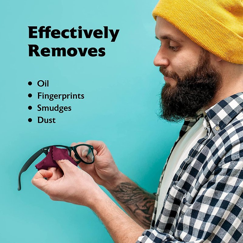 - 100% Microfiber Cloth Material: Our premium glass cleaning cloths are made with 100% premium microfiber that's designed to help remove impurities from your lenses and glasses. Quickly remove dust and other particles from lenses using our microfiber cleaning cloth for glasses.