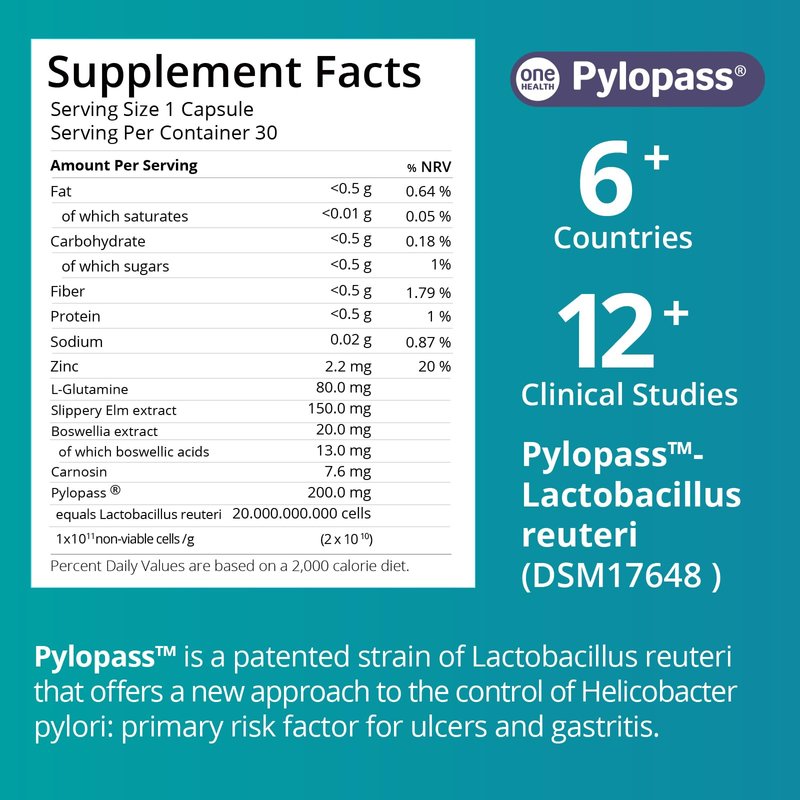 purmeo 5 in 1 High Potency H. Pylori Treatment Probiotics - Gastritis Support - 1 Per Day - Pylopass Lactobacillus Reuteri DSM17648 - No Refrigeration Needed - Made in Germany