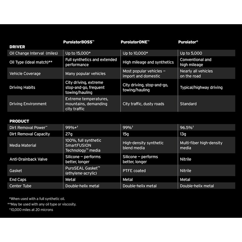 - High-density synthetic blend media with up to 99% Dirt Removal Power