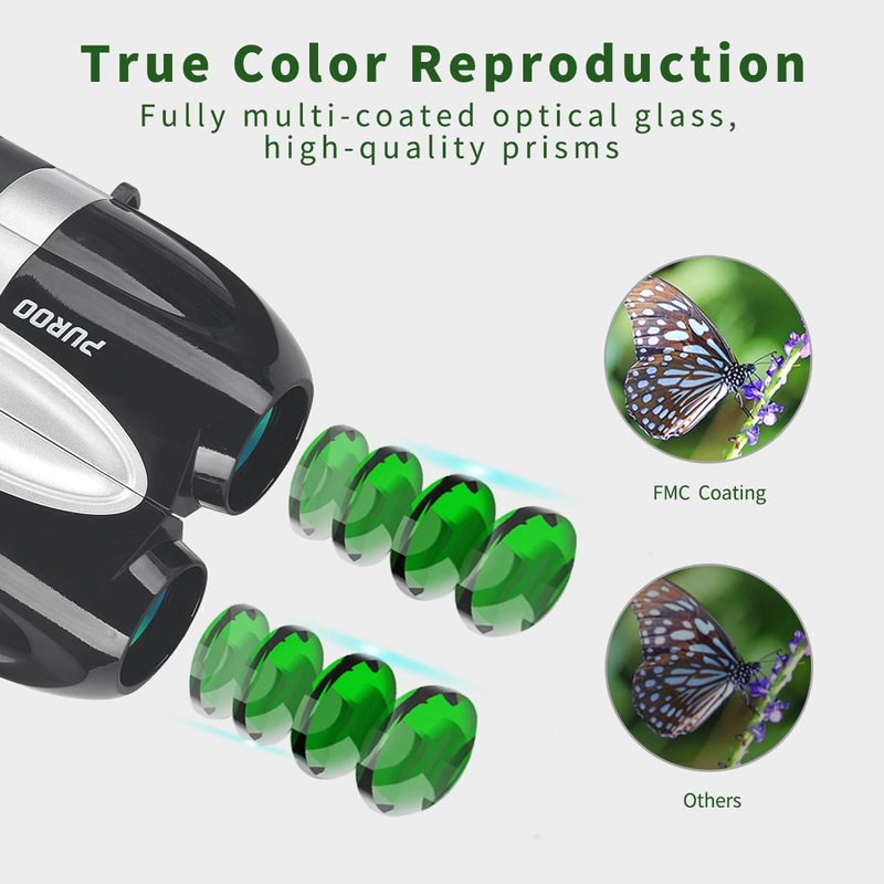 - 【Versatile Use】PUROO mini pocket binoculars are easy to carry and storage, fitting perfectly in your bag.Available in five colors,they provide ultra-clear views and long observation distances.Ideal binoculars for adults kids,bird watching,hunting,hiking,cruise ship,camping,travel,opera,concerts,sports events, and stargazing.