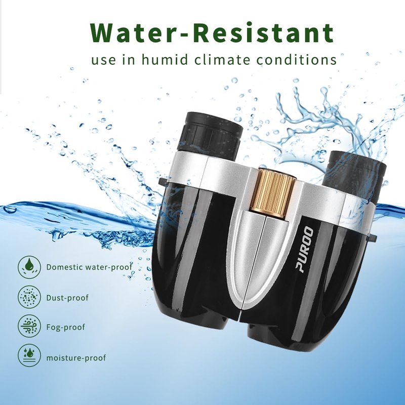 - 【Ultra-Light High Quality】Made of ABS plastic and rubber,the PUROO binoculars are lightweight(about 6.3 ounces),shockproof,non-slip,and comfortable to grip. They are waterproof for everyday use and maintain performance and durability in harsh weather and intense use, making them reliable for outdoor enthusiasts. Do not use in heavy rain or submerge in water.