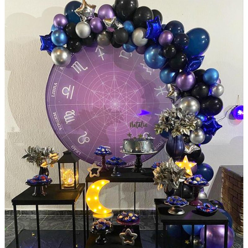 Purple and Blue Balloons Set, 50 PCS 10 Inch Purple Blue Black Party Balloons, Space Balloons Navy Blue Purple Silver Helium Balloons for Birthday Party Space Theme Baby Shower Supplies