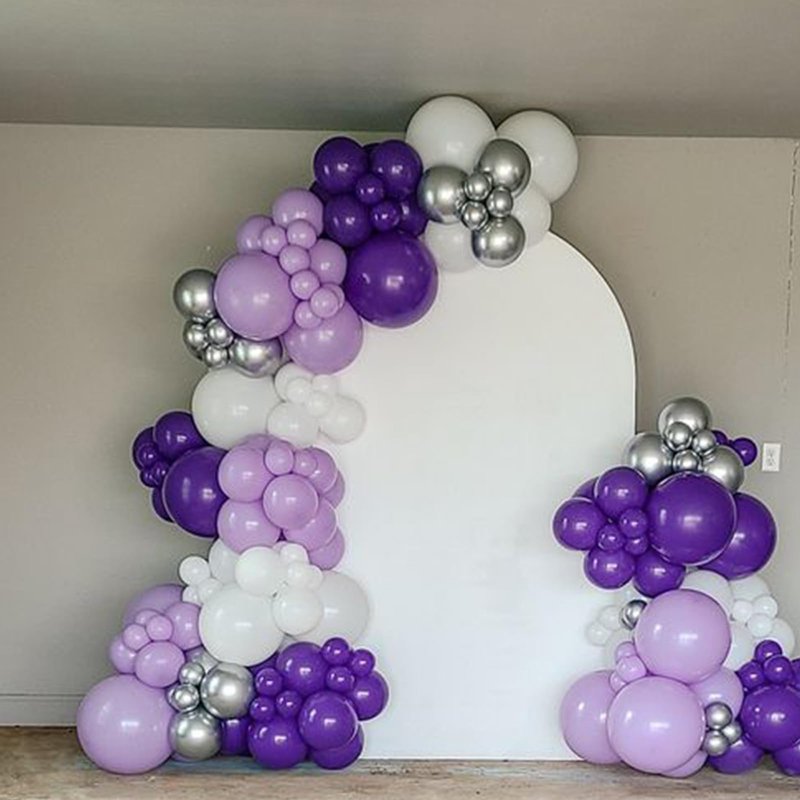 - Package Include: Our 55PCS purple and silver balloons is the ideal way to add a touch of elegance to your event! It mix of purple silver and white balloons, including 15 x 10inch white balloons, 15 x 10inch purple balloons, 15 x 10inch macaron purple balloons, 5 x 10inch metallic silver balloons, 5 x 12inch silver confetti balloons, and a white ribbon.