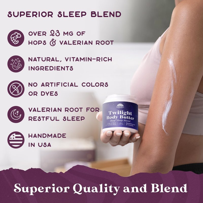 - Harnessing the power of natural ingredients, our Twilight Butter is free from harsh chemicals and artificial fragrances. Instead, it relies on the potency of Jojoba Oil, Sunflower Oil, and Aloe Vera to deeply nourish and soften the skin, promoting a healthy and radiant complexion while you sleep.