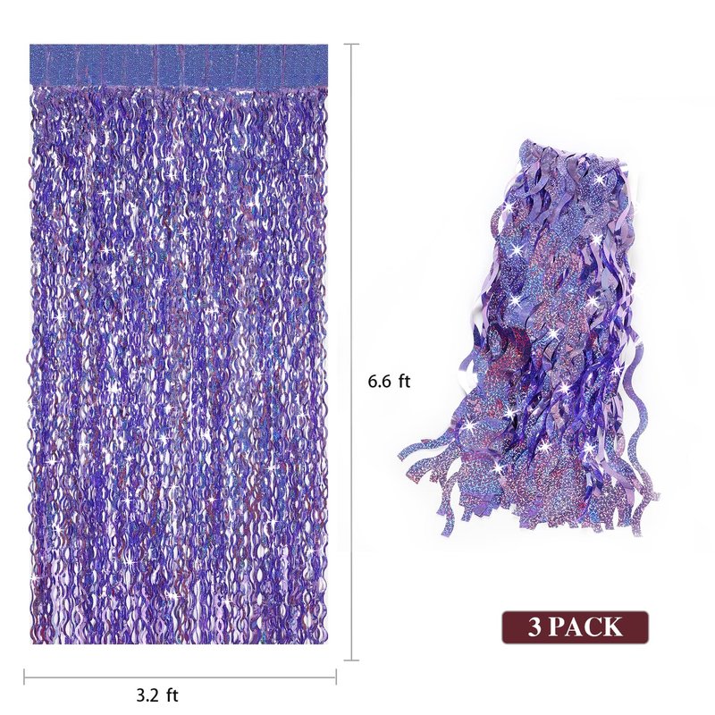 - Packing Included: 3 packs purple tinsel foil fringe curtains party photo backdrop,Each pack curtains size is 3.3ft x 6.6ft, enough length for decorate your party