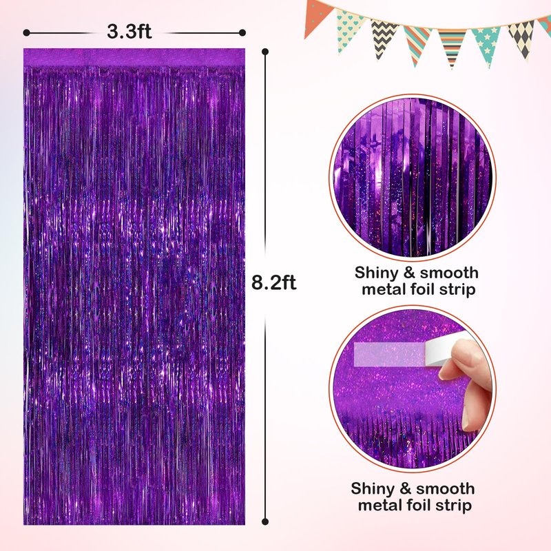 Purple Metallic Tinsel Foil Fringe Curtains, 2 Pack 3.3x8.3 Feet Party Streamer for Birthday Party Decorations, Halloween Decor, Foil Curtain Backdrop for Bachelorette Party