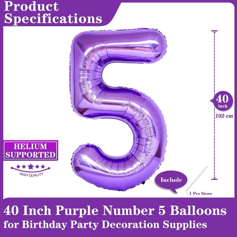 - 【Package Included】40 inch purple number 5 balloons (uninflated), 1 Pcs straw.