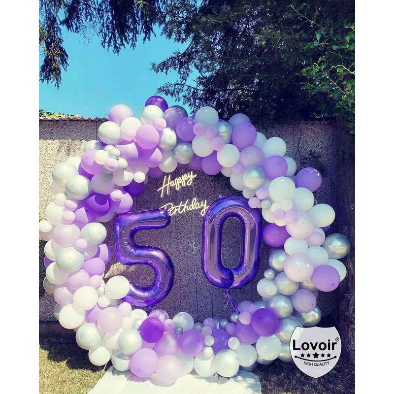 Whether you're throwing birthday party or just want to add some festive cheer to your anniversary themed party, this purple number balloons is a great choice.