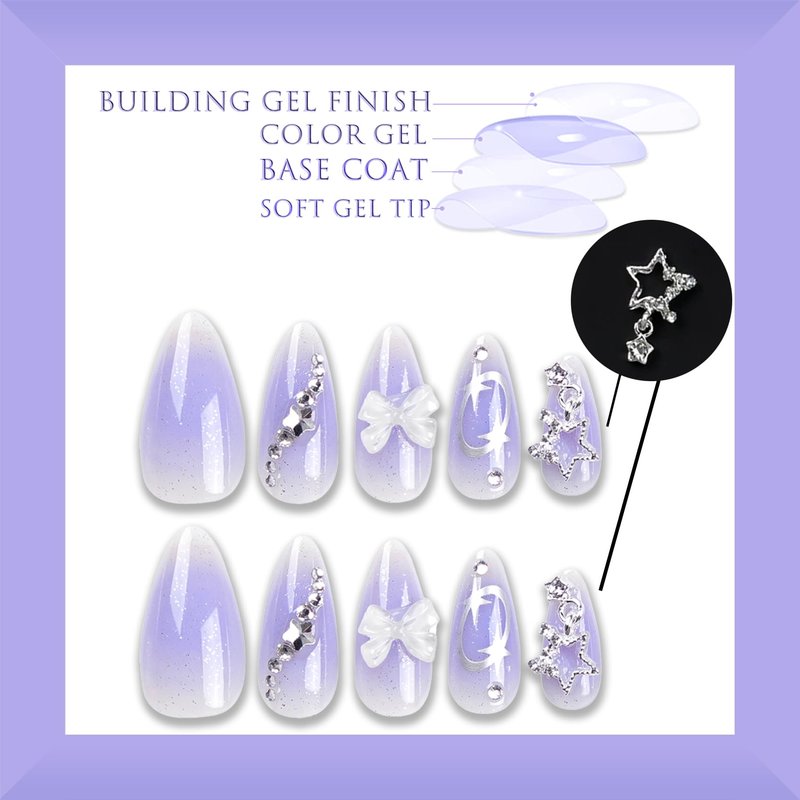 - 🟪【Easy to Apply】Instead of spend lots time and money at nail salon, you can change you nails style in 15 min anytime and anywhere.(The star fake nails will stay longer if you clean your nails before use,and avoid water within the first hour of wearing)