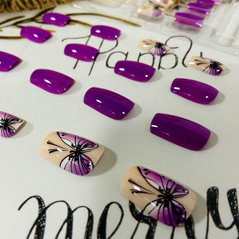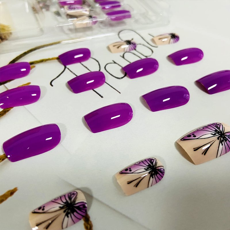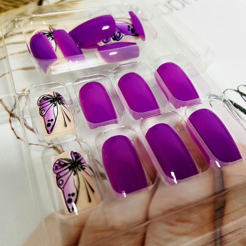 - Easy to Use: Choose the suitable purple butterfly nail, polish the nail bed, paste the jelly glue we give you, press the tide nail art in 30 seconds, and create the nail art that girls like