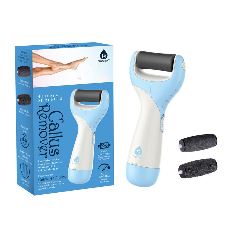 Pursonic Callus Remover Electric Foot File (Zebra Pattern): Step into Softness with Pursonic's electronic foot files for pedicures! Say goodbye to the laborious rubbing of traditional pumice stones and embrace the modern approach to foot care with our callus remover machine for feet. These innovative pedicure tools gently yet effectively buff away stubborn, hard skin, unveiling feet so smooth and soft they're begging to be shown off. Each foot electric callus remover boasts two interchangeable roller heads, tailored to your feet's unique needs. The buffing roller gracefully exfoliates, shedding away dry skin, while the coarse roller fearlessly tackles those pesky, hardened calluses. But the magic doesn't stop there. The Pursonic electric foot file for dead skin offers unparalleled portability. Thanks to its battery-powered operation, using four AA batteries, you can ensure your feet stay in top condition wherever your journey takes you. The freedom of cordless operation combined with powerful performance offers a foot care experience like no other. So, as summer adventures beckon, ensure your feet are more than ready. With the Pursonic electric pumice stone for feet callus remover in hand, every step will exude confidence and elegance. Dive into a world where beauty meets functionality, and let your feet do the talking. — Package Includes: 1 x electronic foot file callus remover for feet, 2 x roller head and 1 x cover — About Us: Pursonic is a family-owned business with roots in manufacturing since 1971. Based in NYC the PURSONIC brand was launched in 2012 and it was geared to offering premium products at a value price. Our commitment is to introduce new, innovative and exciting products that all can afford.