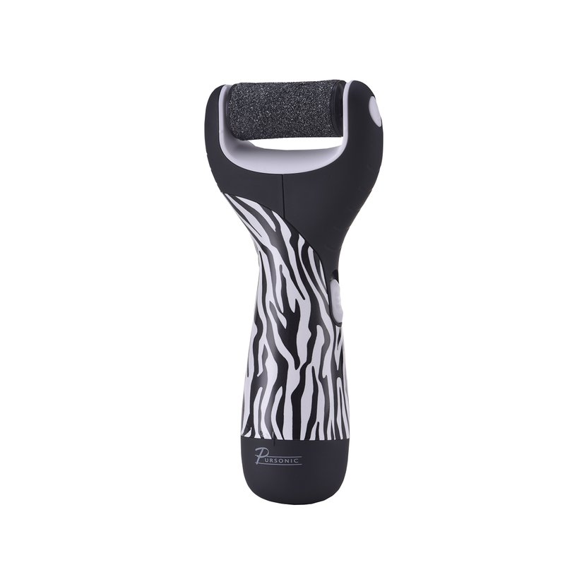 Pursonic Zebra Electric Callus Remover for Feet — Battery-Operated Electric Foot Scrubber — Dead Skin Remover with 2 Pumice Stone Electric Heads — Pedicure Foot Spa Products (0.7 Lb)