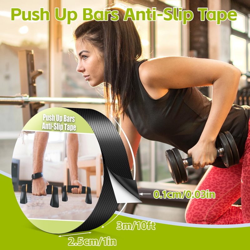 Push Up Bars Anti-Slip Tape,Rubber Grip Tape,Provides Comfortable Grip and Anti-Slip for Gym Equipment,and Tools (Black, 1In x 10Ft)