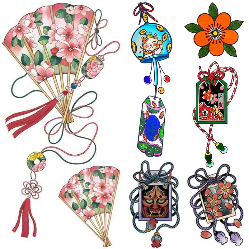 PUSNMI Japanese Temporary Tattoos Kit for Women Cherry Blossoms Traditional Tattoo Flower Fan Old School Stickers Lucky Cat Tattoo for Women Girls Realistic Long Lasting Tattoos for Arm Leg and More
