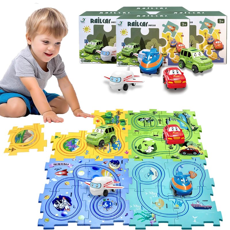 Puzzle Racer Kids Car Track Set Puzzle Racer Car Track Set with Vehicle & Puzzle Board for Kids Ages 3+ (4 Style & 4 Vehicle)