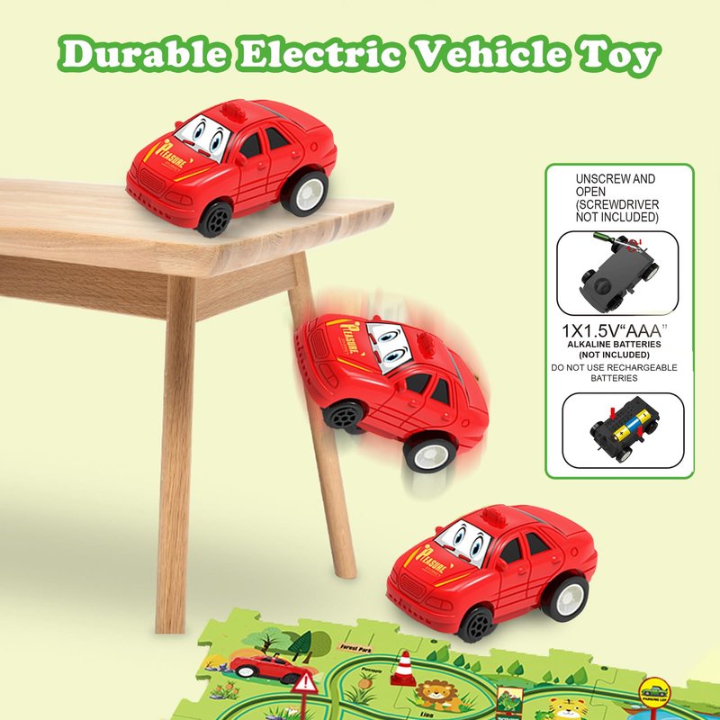 - Children's Educational Track Car Set - This puzzle track plane play set Includes 8 pcs puzzles and 2 cute electric cars (1*AAA battery required but batteries not included), the puzzles can be easy to assemble into different tracks for the electric little cars to run around