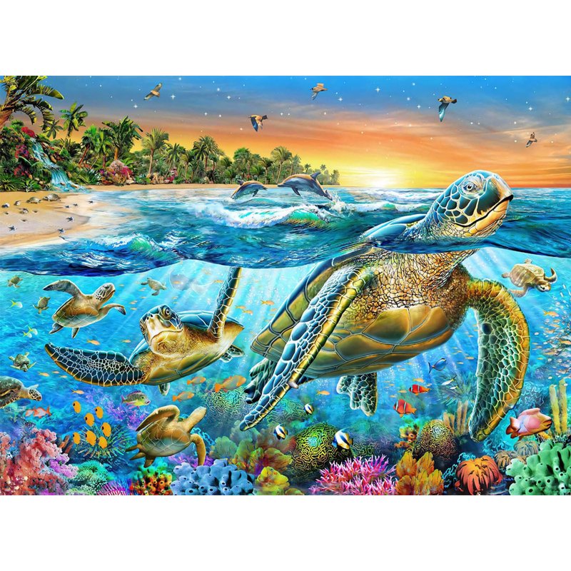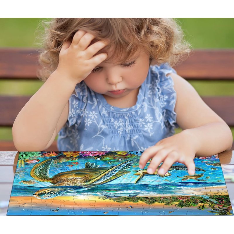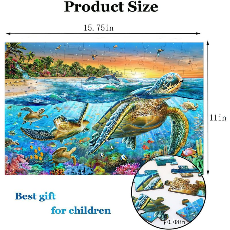 - ❤Size – 100 pieces swim turtle puzzles and a 1:1 reference poster that help the young children to finish the puzzle. Every piece is unique, complete cutting and fits perfectly. Finished size: 15.75"x11" inch