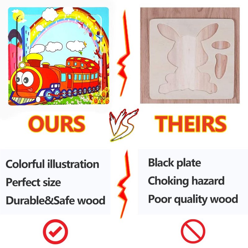 - 【Sturdy Wooden Storage Tray】The puzzles for kids are made of safety strong wood material, sturdy and durable. All of the corners of these puzzles for kids are well processed, no sharp corners, which is safe for the young children. 9 pieces each puzzle for 2 3 4 5 boys and girls are easy to complete. There's a wooden frame for each puzzle to help keep pieces in place.