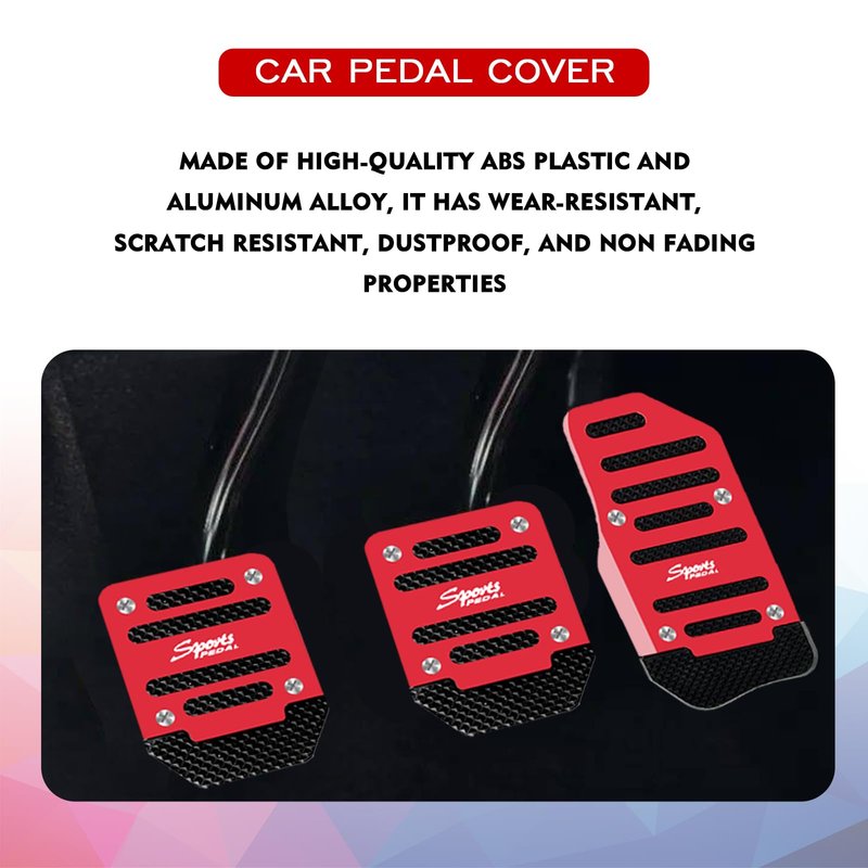 pvotawp 3PCS Car Non-Slip Aluminum Alloy Pedal Pads, Anti-Rubbing Auto Manual Transmission Brake Pad Cover, Gearbox Gas Car Clutch Foot Pedal Kits Universal Replacement Accessories (Red)