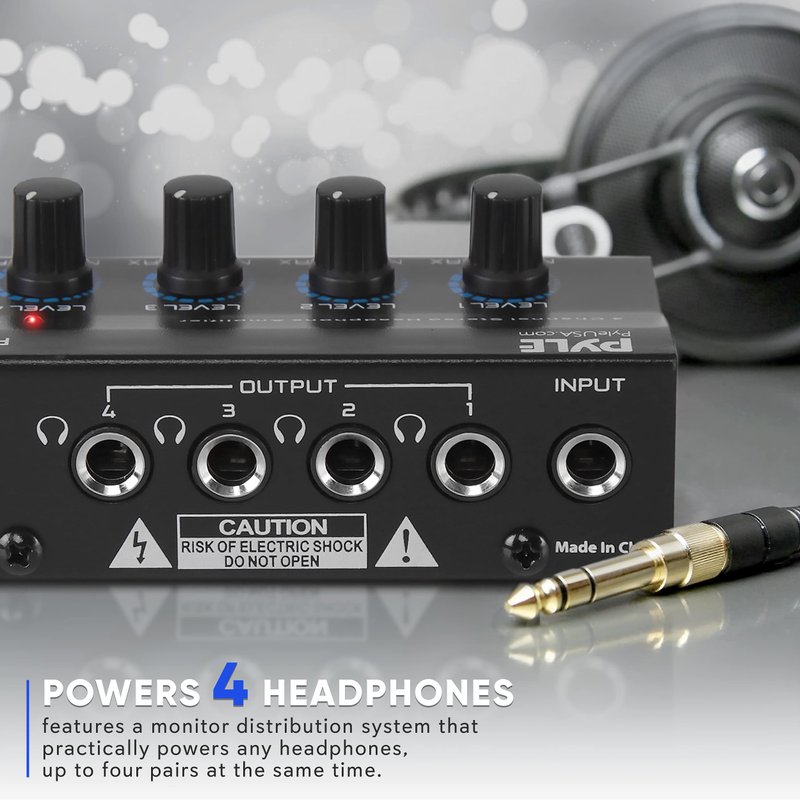 - POWERS 4 HEADPHONES: The Pyle Stereo Headphone Amplifier is a monitor distribution system that powers practically any headphones - up to four pairs at the same time. This allows four people in your studio to listen to the main mix while recording
