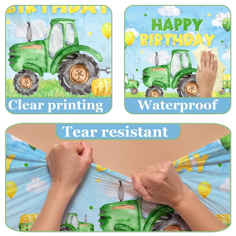 - 【Widely Used】The happy birthday tractor table cloth is suitable for decorating the dining table for tractor theme party, baby shower, baptism and birthday parties. Tractor table cloths also can be used as a background for party photos.